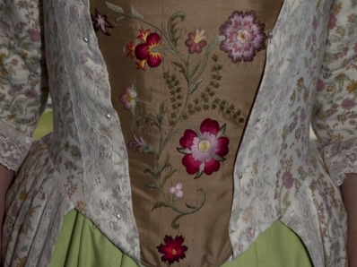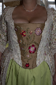 We are picky about Lace. While no-one can afford the real thing, we carefully source lace to give the best possible period effect, for example by using a quality Edwardian Leavers Lace on an 18th Century Gown to give a more period look than could be achieved with modern lace.
